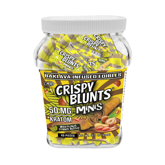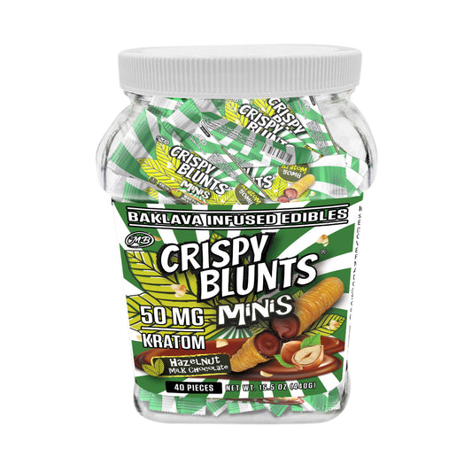 Kratom minis 50mg each with Hazelnut Chocolate Peanut butter Cream Crispy Blunts Crispy Phyllo Dough