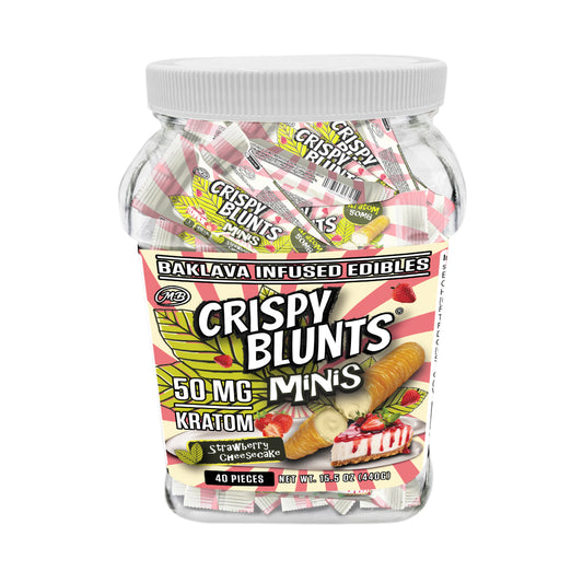 Kratom minis 50mg each with Strawberry Cheesecake Cream Crispy Blunts Crispy Phyllo Dough