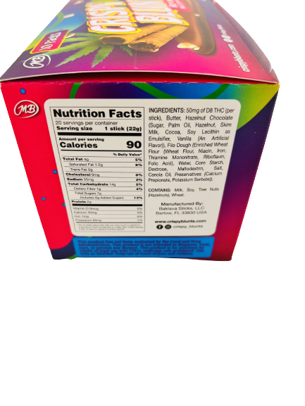 D8 Box of 10 (2 packs) 100mg with Hazelnut Chocolate Cream Crispy Blunts Crispy Phyllo Dough 2 Sticks 1.5 oz