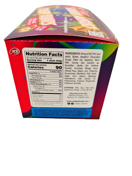 D9 Box of 10 (2 packs) 100mg with Hazelnut Chocolate Crispy Blunts Cream Crispy Phyllo Dough 2 Sticks 1.5 oz