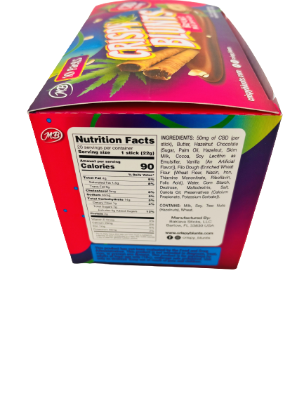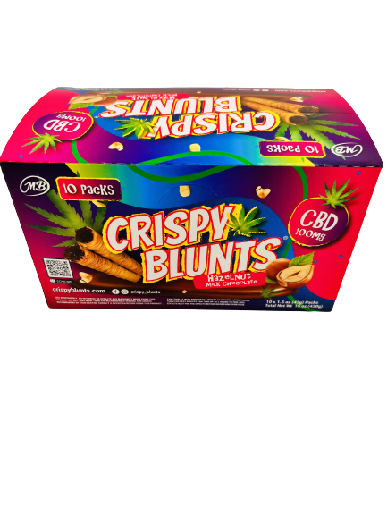 CBD Box of 10 (2 packs) 100mg Crispy Blunts with Hazelnut Chocolate Cream Crispy Phyllo Dough 2 Sticks 1.5 oz