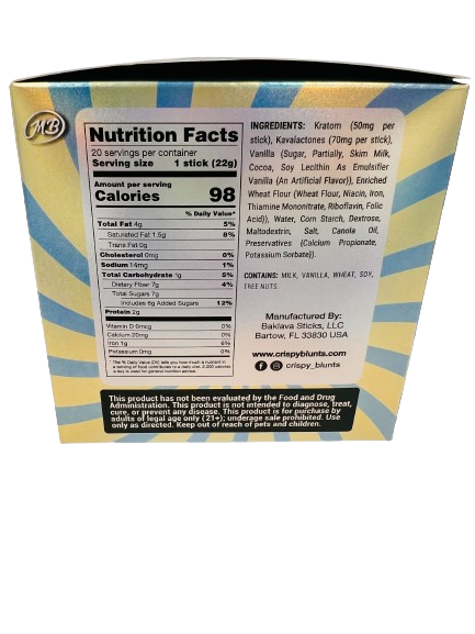 Kratom Box of 10 (2 packs) 100mg with Vanilla Cream & Kava Crispy Blunts Crispy Phyllo Dough 2 Sticks 1.5 oz