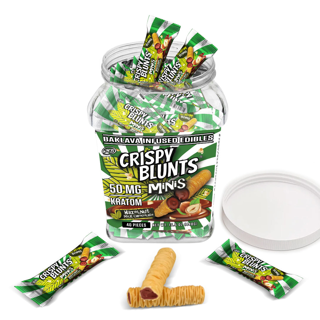 Kratom minis 50mg each with Hazelnut chocolate Cream Crispy Blunts Crispy Phyllo Dough