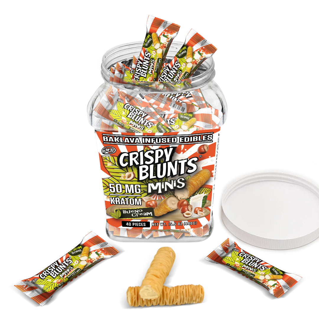 Kratom minis 50mg each with Bueno Cream Crispy Blunts Crispy Phyllo Dough