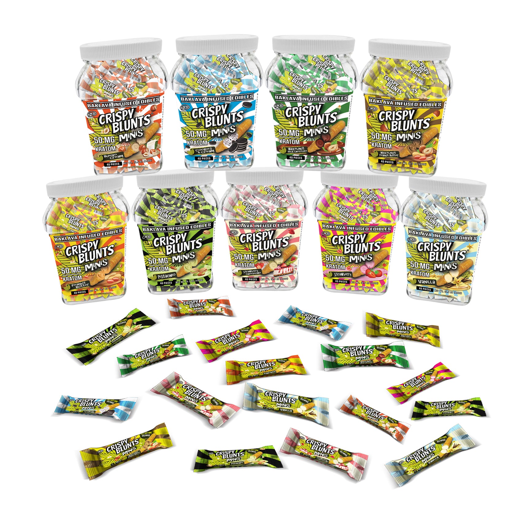 Kratom minis 50mg each with Peanut butter Cream Crispy Blunts Crispy Phyllo Dough