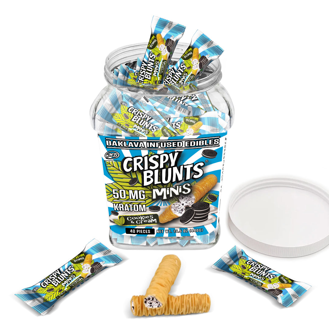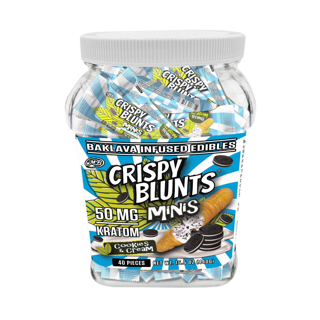 Kratom minis 50mg each with Cookies & Cream Crispy Blunts Crispy Phyllo Dough