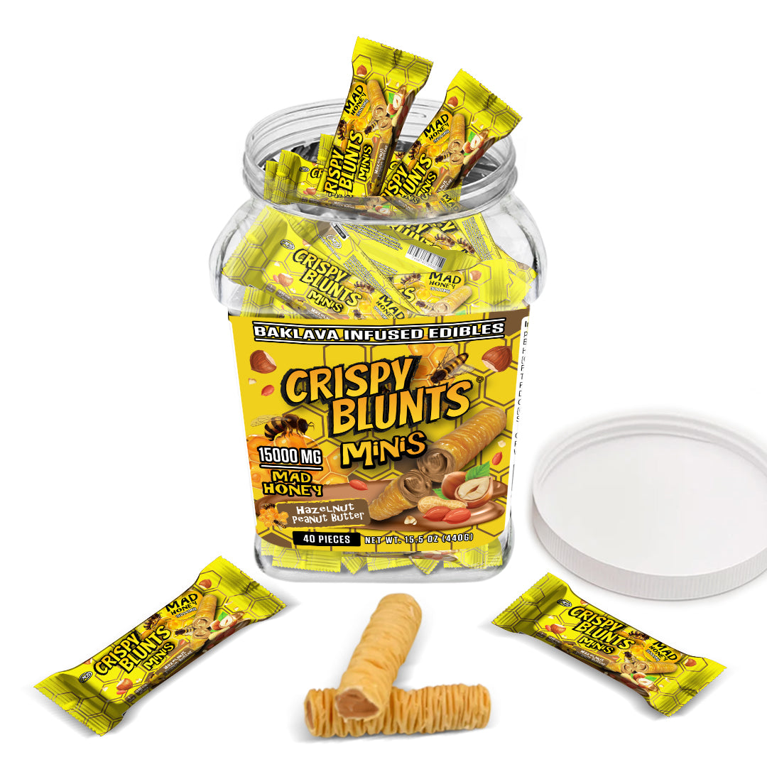 MAD HONEY minis 15000mg each with Hazelnut Chocolate Peanut Butter Crispy Blunts Cream Crispy Phyllo Dough